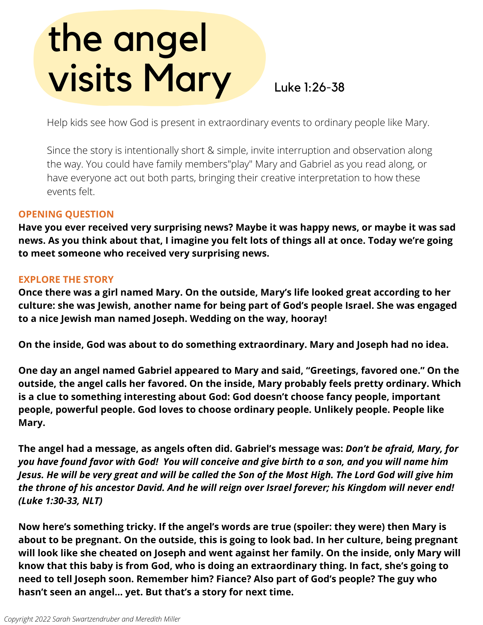 The angel visits Mary - Luke 1:26-38 - God is present in extraordinary events to ordinary people like Mary.