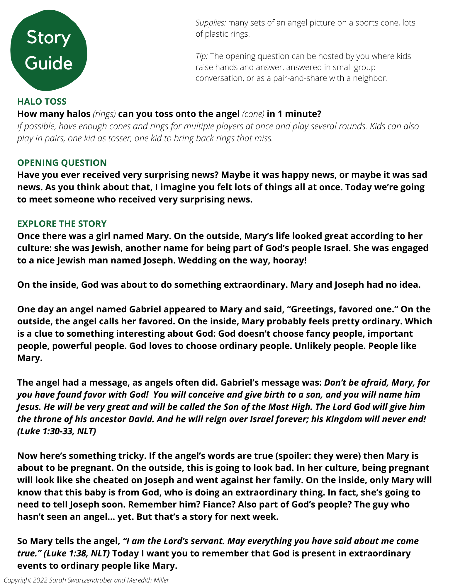 - STORY GUIDE: An age-accessible paraphrase of each story.